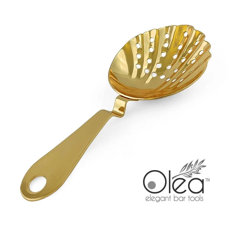 “Absolutely stunning” are the perfect words to describe this gorgeous Gold Plated Shell Julep Strainer. One of the first editions to our line of Olea™ Elegant Bar Tools, this cocktail strainer is every master mixologists and professional bartenders dream bar tool. This high quality piece is constructed from a durable stainless steel material and then beautifully plated with a reflective Gold finish.