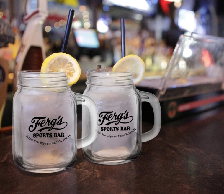 Mason Jar Drinking mugs are all the rage! They are the perfect way to serve all kinds of cocktails, water, or soft drinks. The rustic charm of these drinking glasses is really amplified when you add your bar or restaurant logo to them. These sturdy glasses have lots of room to allow for customization with your logo or text. They make a great addition to restaurants, bars, pubs, and other hospitality businesses. Order custom mason jars for your establishment today!