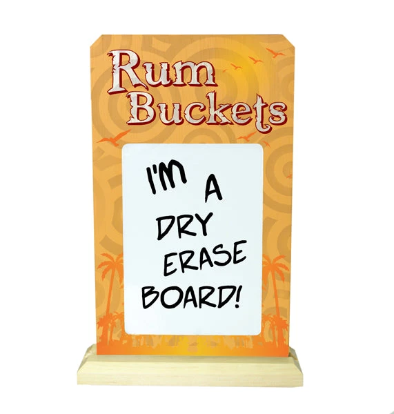 Don’t forget to get Dry Erase Wooden Signs to advertise your buckets. You can write prices and other specials on the front of the board and let guests see the recipes on the back of the board. They are great for tables and bar top advertising.