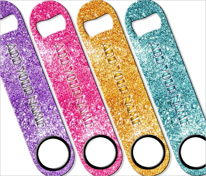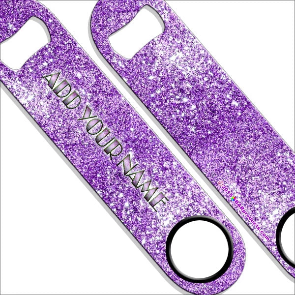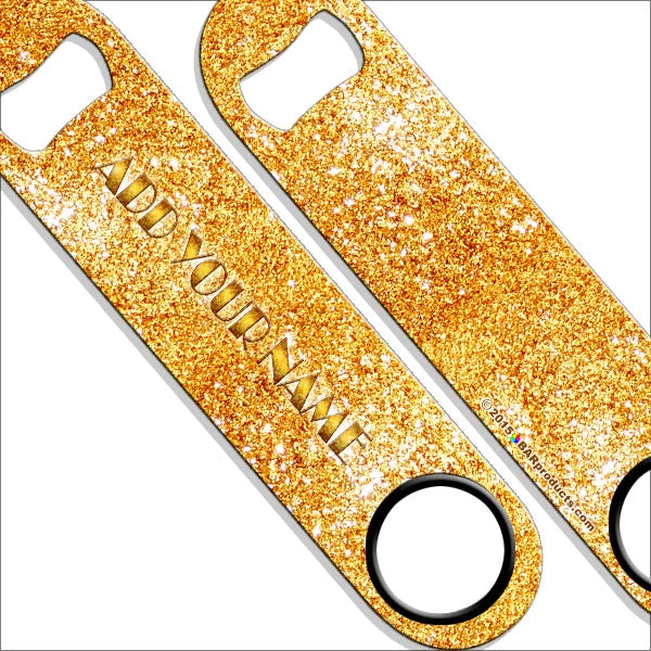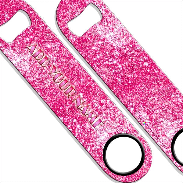 Choose from several color options of this flashy “Bling” Bottle Opener design, and also have the ability to add your own text right into the design. Adding your name (or other text) is optional, but a cool way to claim your opener. Simply choose your color and type in your message. This is also a great customizable gift idea for the bartenders or beer drinkers you wish to show your appreciation for.