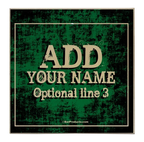 This green colored grunge design is perfect for advertising your pub, bar, or restaurant with its customizing ability. The Add Your Name Feature on this ring toss game is optional, but certainly pretty cool! Text will be typed exactly as it is entered. There are 3 lines and you may lay out your text however you like.