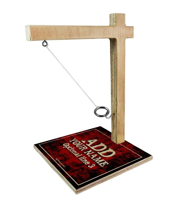 This red colored grunge design is perfect for advertising your pub, bar, or restaurant with its customizing ability. The Add Your Name Feature on this ring toss game is optional, but certainly pretty cool! Text will be typed exactly as it is entered. There are 3 lines and you may lay out your text however you like.