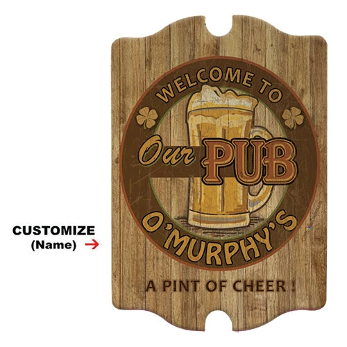 This wood tavern bar sign is customizable and perfect for displaying in your bar or restaurant. You can add the name of your pub or even your own name to add some flair and personality to your wall decor. This sign is constructed from real wood and crafted with care. So serve up a pint of cheer to your customers with this wood tavern bar sign made right here in the USA.