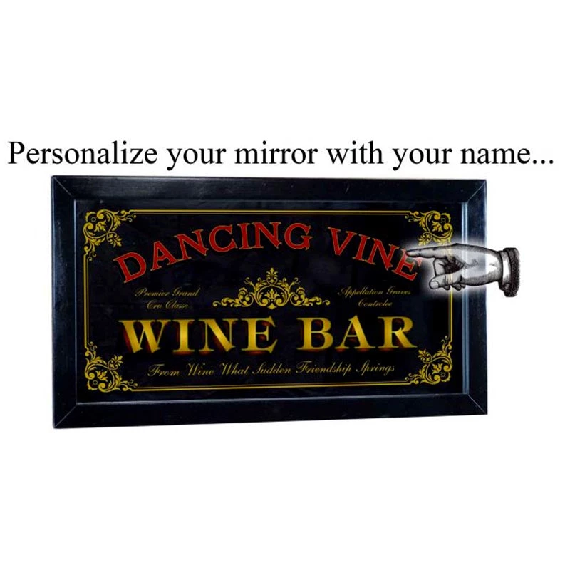 Vintage style customizable mirror with black wood frame. Add any text of your choice! This mirror is made from 1/4 inch glass mounted with wooden backing. Made in the USA and measures 12″ x 26”