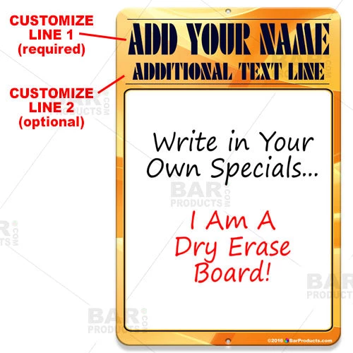 Every bar or restaurant has specials and events they need to promote… it’s what keeps you one step above the competition. There are many ways to get the word out, and this dry erase metal sign is one of the best! This metal “specials” sign is a dry erase board, so you can easily change your specials from day to day or week to week. It wipes away clean with no colored stain left behind. There are 2 small drill holes on the top and bottom, so mounting this sign securely to a wall is easy. Choose from 2 sizes: 12″ x 18″ or 9″ x 12″