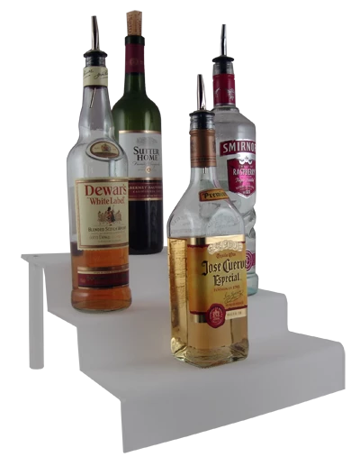 The perfect way to display your liquor bottles behind the bar in a fun, stylish and economical way. This 12 or 18 inch Acrylic Shelf is rugged and simple to assemble, and comes in two and three tiers. The two tier model measures 6.25 inches high x 10 inches deep, and the three tier measures 6.75 inches high x 12 inches deep.