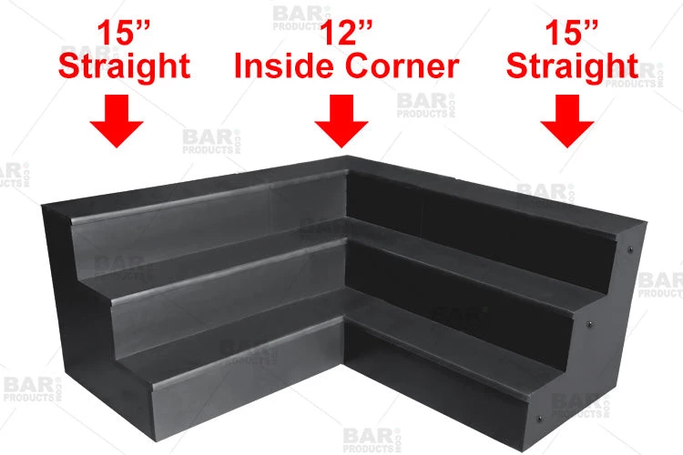 Along with the straights, we offer Island End Cap, Outside Corner, and Inside Corner increments as well. With these components, you can custom build L-shaped shelves, Island Shelves, and all types of unique displays. This is where you can get really creative!