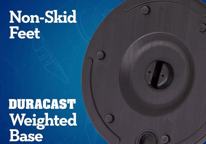 - 15 lb. weighted base with six no-skid, non-marking rubber feet