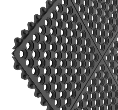 This Interlocking Rubber Floor Mat is ideal for every type of working service environment from kitchens and bar, to warehouse and utility work stations. It’s low, half inch profile and slip resistant surface help with both employee comfort and safety.