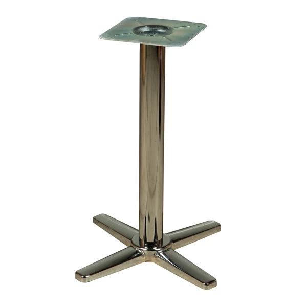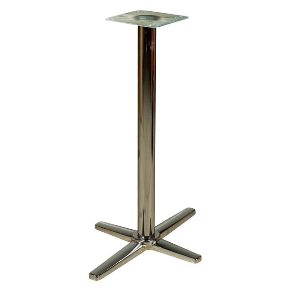 Chrome Plated Cross Table Bases come in standard and bar height sizes, with a 3″ Tube and Spider. These modern bases can hold table tops from 24″- 36″ that are square, rectangular, or circle. They are constructed of heavy 18 gauge chrome plated steel tubes and bases. Standard height finishes at 30″ with table top attached. Bar height finishes at 42″ with table top attached.