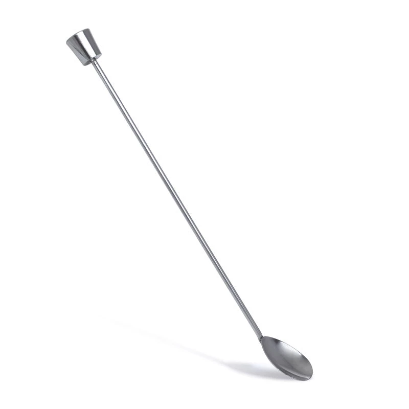 Another multipurpose bar spoon, this 11 inch stainless steel spoon has a steel knob end on the handle for basic muddling and smashing of fruits. Bar spoons are meant for mixing/stirring in the glassware directly.