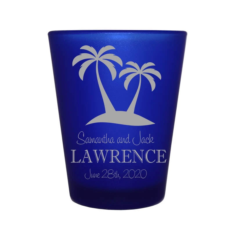 This 1.5 ounce blue frosted shot glass is one of our best sellers. It showcases a high quality partially opaque frosting and looks fantastic with our custom screen printing process. The ink will not wash off in the dishwasher, lasting for years to come.