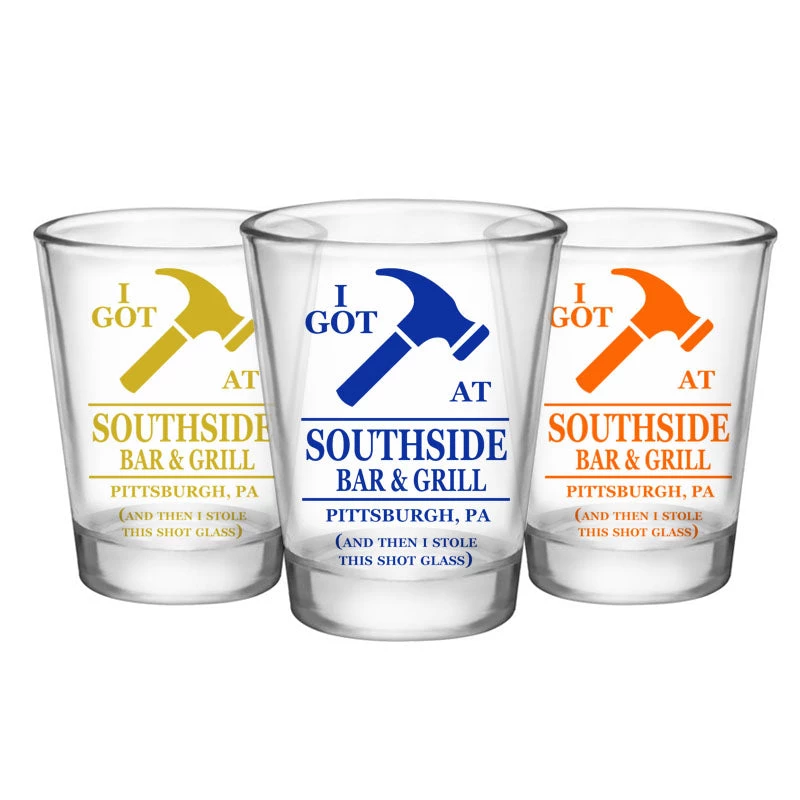 This 1.75 ounce shot glass is one of our best sellers. It showcases a high quality clarity and looks fantastic with our custom screen printing process. The ink will not wash off in the dishwasher, lasting for years to come.