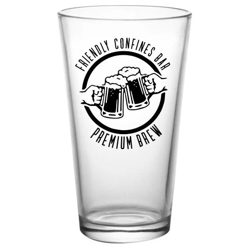 This 16 ounce beer / mixing glass is one of our best sellers. It showcases a high quality clarity and looks fantastic with our custom screen printing process. The ink is commercial dishwasher safe and will last up to 200 washes. Do not scrub imprint with abrasive materials.