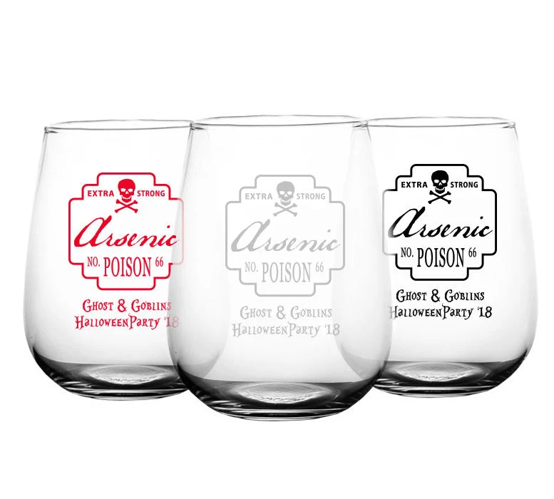 This 17 ounce Stemless Wine Glass is one of our best sellers. It showcases a high quality clarity and looks fantastic with our custom screen printing process. The ink will not wash off in the dishwasher, sending your personalized message for years to come.