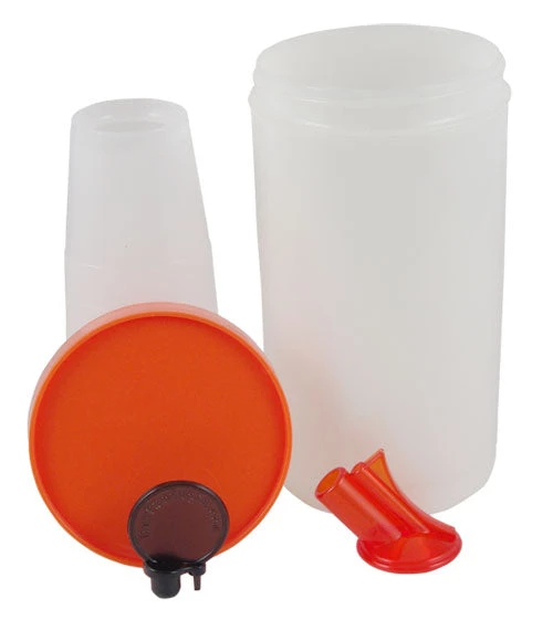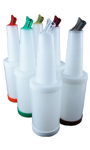This particular Juice Pourer is designed with a tapered “oval” neck therefore allowing you to handle it without having to visually check the direction of your pour. Quick, efficient and easy to use! It’s neck is textured & shaped for an enhanced grip. Purchase includes the white quart container, a white neck, colored lid, and a colored spout (except for the white neck, it has clear spout). The pour spout and neck separate for easy cleaning. Available in 6 Colors Red, Orange, Green, Yellow, Brown, and Clear (Colors will start to double when ordering over 6). Neck measures 1 3/4″ W x 2 1/4″ D x 5″ H. When ordering in quantities, multiples of 6 is greatly appreciated.