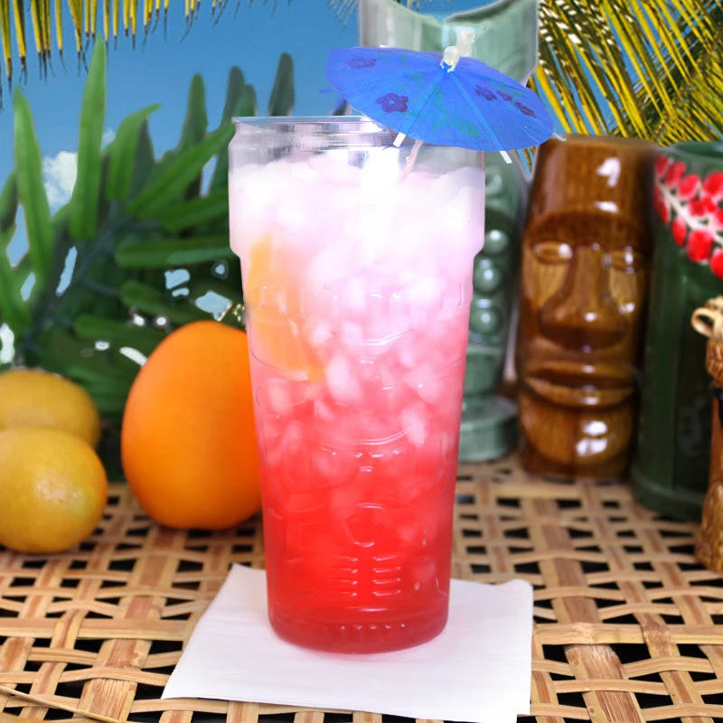 Serve your guests their favorite cocktails or any beverage in style with these fun and durable Plastic Tiki Glasses. These plastic tiki cups are made of long lasting durable plastic, so they will not break easily. The stackable design makes the perfect solution for saving space at your bar. These Stackable Plastic Tiki Glasses are popular as souvenir items, especially for tiki bars, beach bars and anywhere. They’re a great way to add an easy upcharge to your drink specials, by allowing your customers to purchase them as “take home” drinkware.