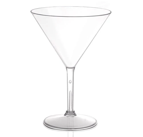 These Ultra 10 oz. Martini Glasses are made from crystal-clear and shatter-resistant acrylic to give the look and feel of true glasses. Because they will not break or crack easily, these acrylic martini glasses are perfect for any event, outdoor decks, poolside parties, and more. It’s lightweight and completely reusable.