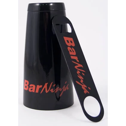 Save 10% when ordering the shaker and opener as a package special! Custom printed Bar Ninja logo on our black powder coated cocktail shaker and speed opener.Ā