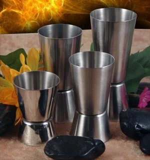 Jiggers are standard bar accessories for every type of bar setting. Bar owners love them for inventory control, and master mixologists who respect accurate cocktail mixing appreciate their measurements. These stainless steel jiggers use METRIC (milliliters) measurement and come in four size options.