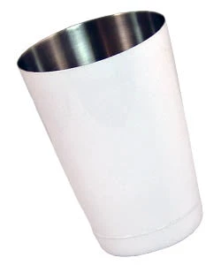 Looking for something more in your stainless steel cheater tin? This white weighted 16oz cocktail shaker has been given a vibrant, reflective, striking powder-coated finish. Weighted base for stability and for the handling by flair bartenders.