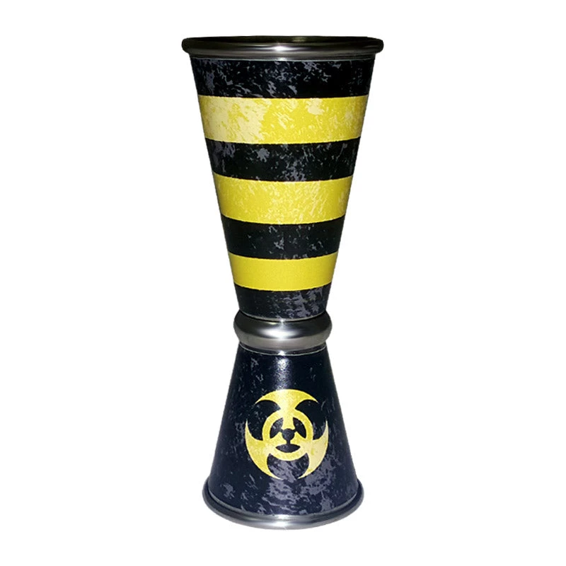 The stainless steel jigger is wrapped with high quality waterproof vinyl and will withstand common bar abuse. The full color glossy design is vibrant, and insists on being one of the main focal points behind any bar. The double-sided utility of this jigger allows for accurate 56 ml measurements as well as 28ml.