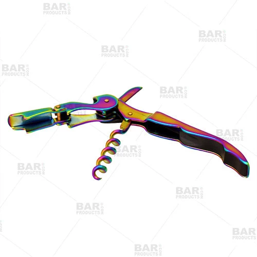 This multi-faceted double hinged corkscrew is cast in beautiful iridescent rainbow colors. And it’s not just lovely to look at, it’s also a great tool for every wine lover. Complete with an integrated bottle opener, a 5 turn worm, and a serrated foil cutter. The stainless steel build makes for a strong durable product that will be with you for a long time. So not only is this set visually striking it is also highly functional and the trendy coloring will stand out and pop in any club or bar!