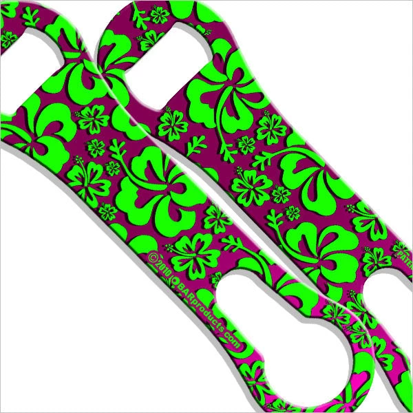 Get whisked away anytime with the pink and green Hawaiian flower print. The bright colors of this opener are great when you are thinking about pina coladas on the beach, but have to sever beers all night.