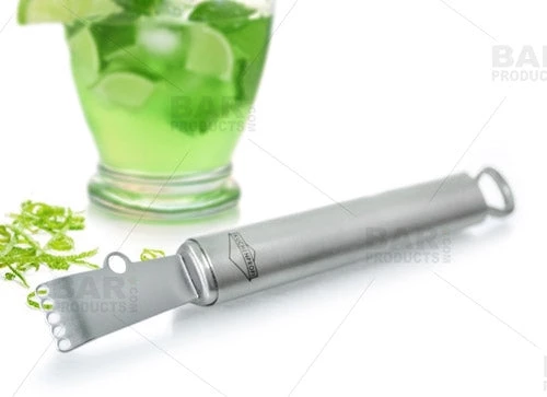 It’s always important to have a reliable citrus zester on hand behind the bar, in a club or restaurant. This zester measures approximately 7″ in length and is made of strong stainless steel for a long lasting durable citrus zester. This exciting bar tool is perfect for use with limes, lemons, oranges, blood oranges, grapefruits and so much more! It delicately peels the outer rind of citrus fruits so you can add complex flavor and beautifully garnish your craft cocktails. Featured are an ergonomic handle for a more comfortable grip and ring for convenient hanging / storage.