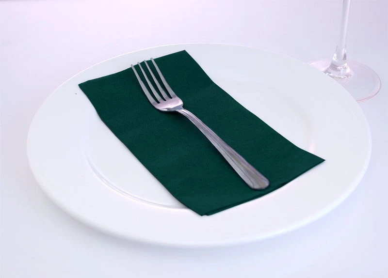 Add a little splash of color to your next event, party or holiday bash. These BarConic® dark green paper dinner napkins are the perfect addition. Unfolded, they measure 15 inches by 17 inches and offer a 2 ply construction. This allows them to be more than ideal when searching for a high quality, durable napkin, while still being disposable.