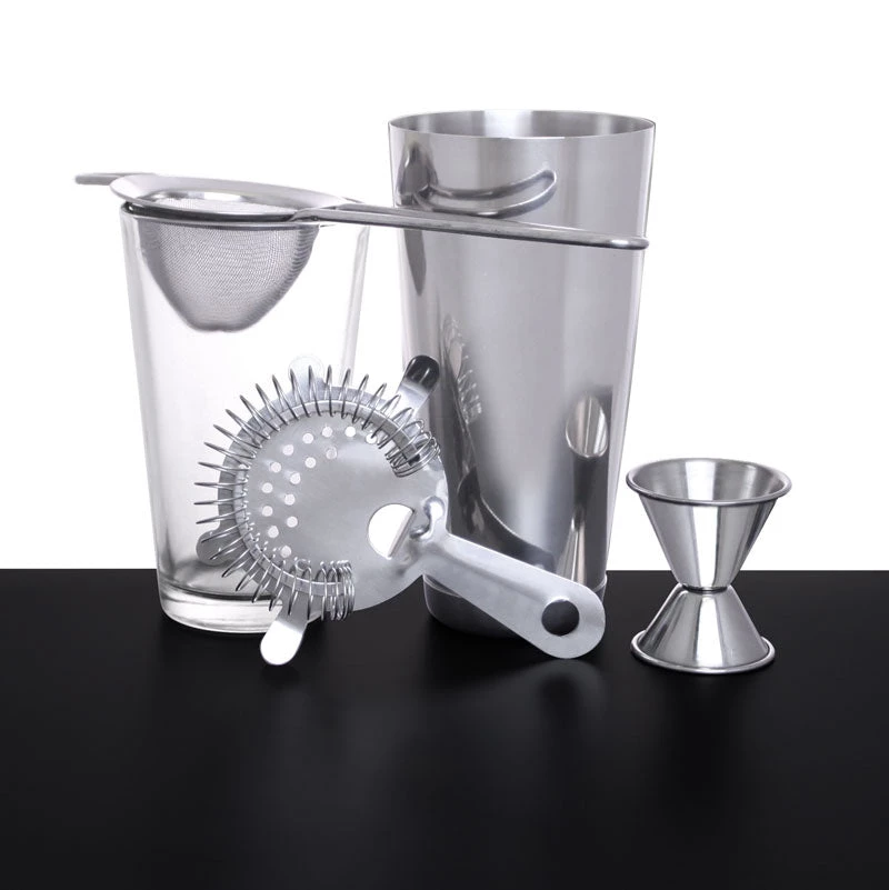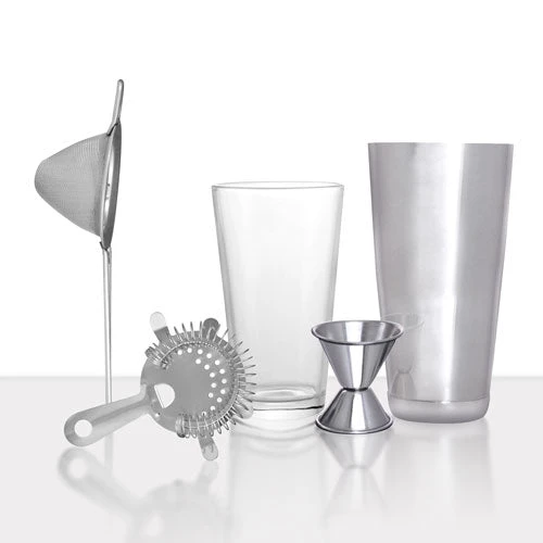 This 5 Piece Professional Double Strained Cocktail Set is perfect for creating pristine cocktails without a trace of floating debris. It’s perfect for any cocktail that requires an extra step, a special bit of finesse to make them smooth and visually satisfying. This elegant, professional cocktail set includes: (1) 28 oz. Weighted Cocktail “Flair Shaker” Tin – 93mm Diameter, (1) BarConic® 15 oz. Mixing Glass, (1) 4-Prong Cocktail Strainer, (1) Stainless Steel Conical Strainer, and (1) 1 oz. x 2 oz. Double sized jigger. A must-have for master mixologists, hobby bartenders, and for high-end bars and nightclubs where style is as important as function.
