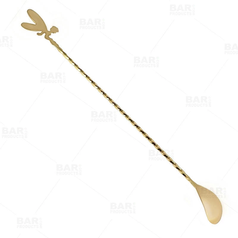 This cocktail fairy bar spoon will certainly add an adorable girly element to your stirring technique! A twist off of the historic absinthe green fairy, this gorgeously reflective bar spoon showcases an exquisite Gold plating. The high quality and durable stainless steel construction backed by the BarConic® brand will ensure longevity and enjoyment. This bar spoon is simply a delight to use with its 30cm length stem that twists down to a smooth spoon end.