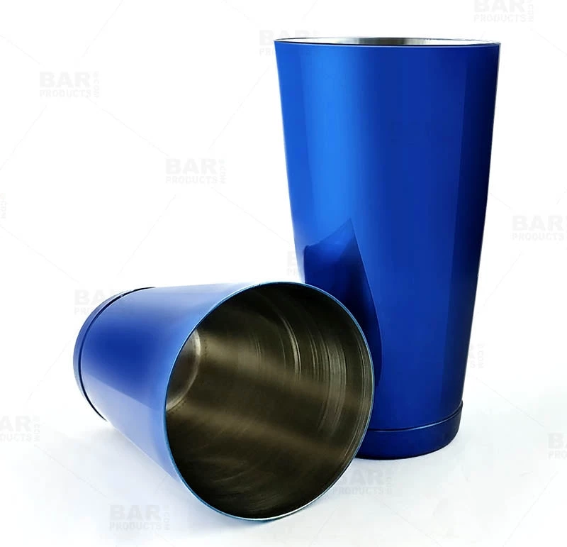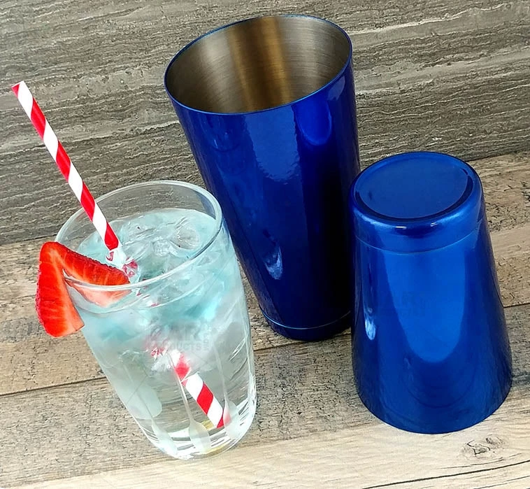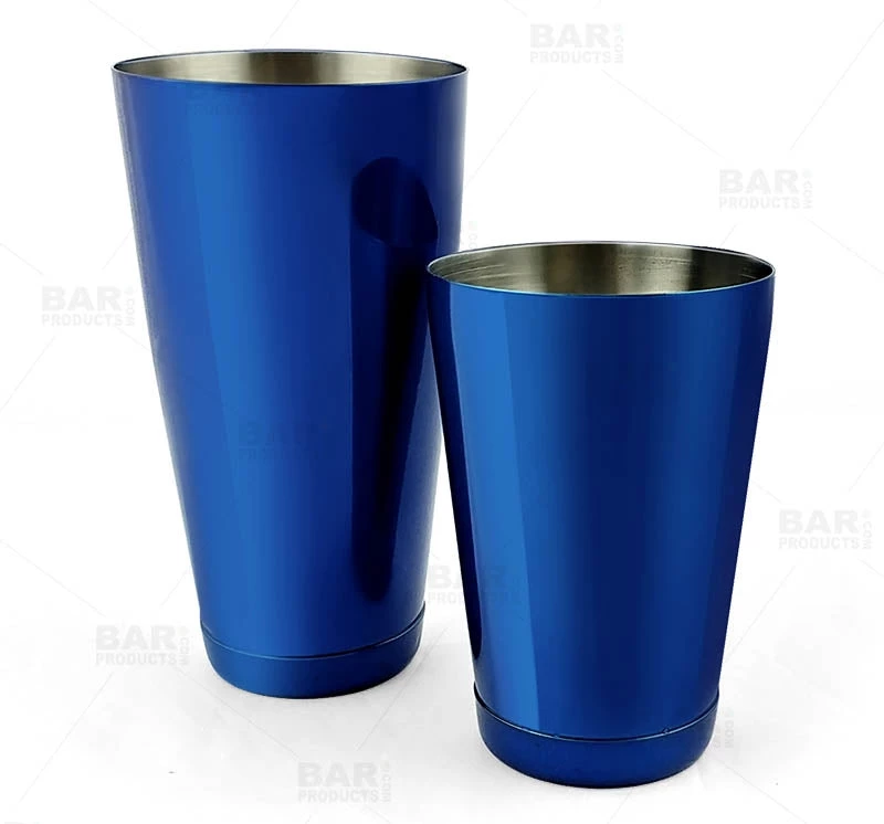 Care to take your bartending showmanship to the next level? Well do just that with our gorgeously reflective 2 piece candy blue shaker set. This stunning blue finish is a beautiful enhancement to the standard stainless steel tins.