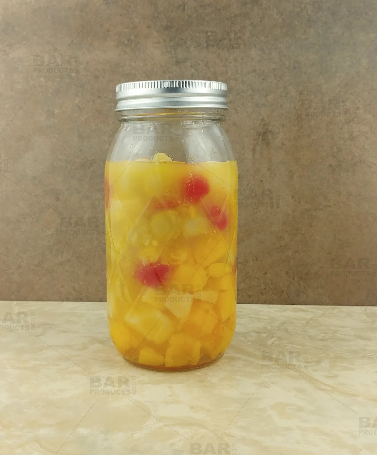 Imagine mixing and serving up your tall cocktails in this trendy diamond cut style Mason Jar. This high quality glassware piece from BarConic® holds up to 24 ounces of liquid and will surely impress your guests at your next gathering. This Mason Jar is ideal for all types of beverage service and garnishing in style. Perfect for ice tea, lemonade and even frothy smoothies and shakes. Great mason jar for mixologists and/or home bars for fermentation and ingredient storage. Lid not included.