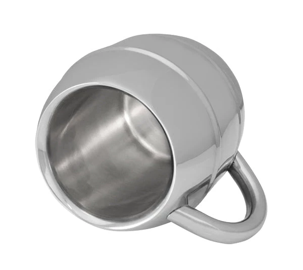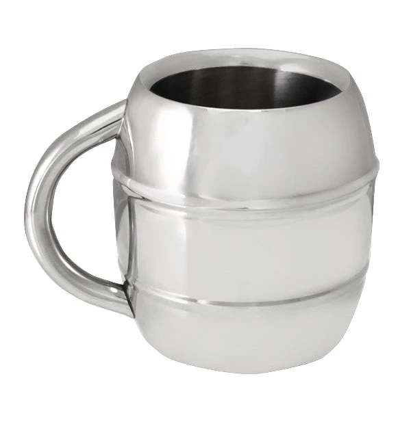 Enjoy a refreshing cold beer at your next party or while watching your favorite sport’s game with this 17.5 oz. (520 ml) Double-walled Stainless Steel Mug. This mug is made of high quality stainless steel and while the double-wall makes it perfect for keeping any beverage cold or hot. It has a unique shape, features embossed ring design and an easy to hold handle.