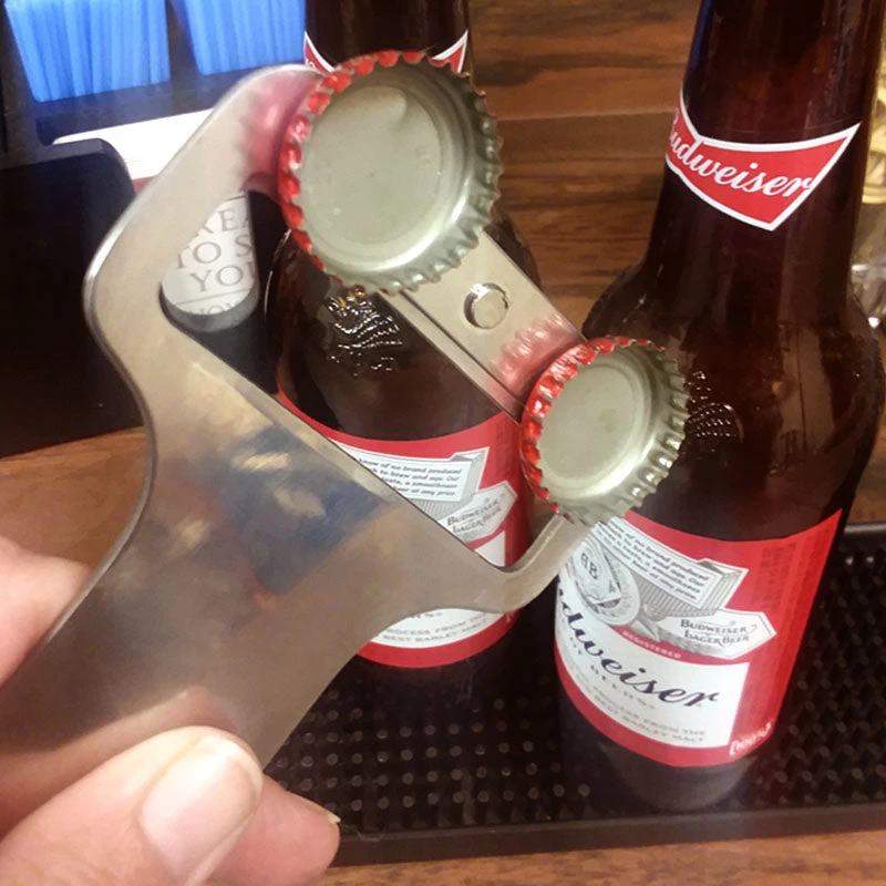 A BarConic® product that features both our one-of-a-kind HAMMERHEAD™ Double Bottle Opener and our V-Rod® Liquor Pourer Spout Opener in one handy tool! Has 3 forceful cap catching magnets. The famous HAMMERHEAD™ Beer Bottle Opener allows you to crack open “TWO AT A TIME!” With a little practice you’ll be speeding up your bartending routine and showing off your skills. The V-Rod® part of this opener was designed exclusively by BarProducts.com to offer another helpful aspect. The V shaped end of the V-Rod® aids in the removal of Liquor Pourer Spouts. If you are a bartender who has ever had to battle with that caked in liquor pour on a busy Friday night after kicking a bottle in the middle of a large shot order, then you will certainly appreciate the purpose and functionality of this tool. Made of stainless steel and measures 7 1/8″ x 3 1/2″