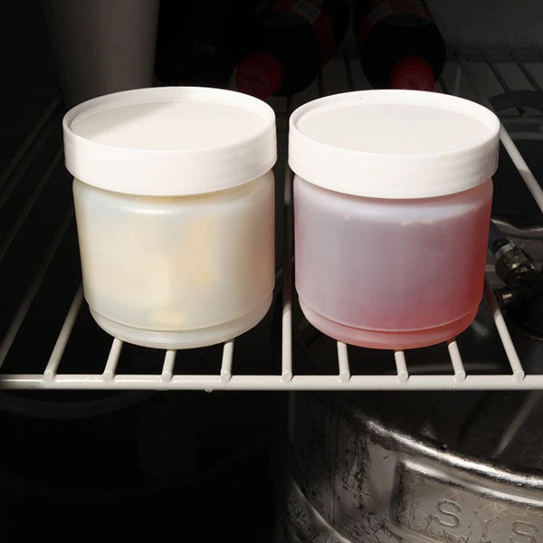 Make that juice switch out fresh, easy and convenient with this pint sized (16oz.) plastic container. The top is threaded to remove the storage lid and twist on any of our color-coded juice pourer necks. The smaller pint size is ideal for venues that do not a have a large request for fruit juice mixers, enabling you to keep your backup juices stored in a cooler rather than sitting out in a speed rail. Quicker switch-out aids in fresher juices, which in turn brings you more repeat customers.