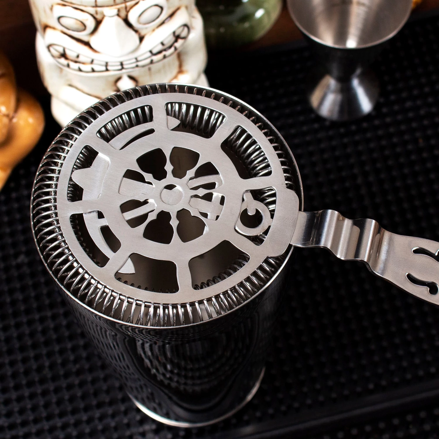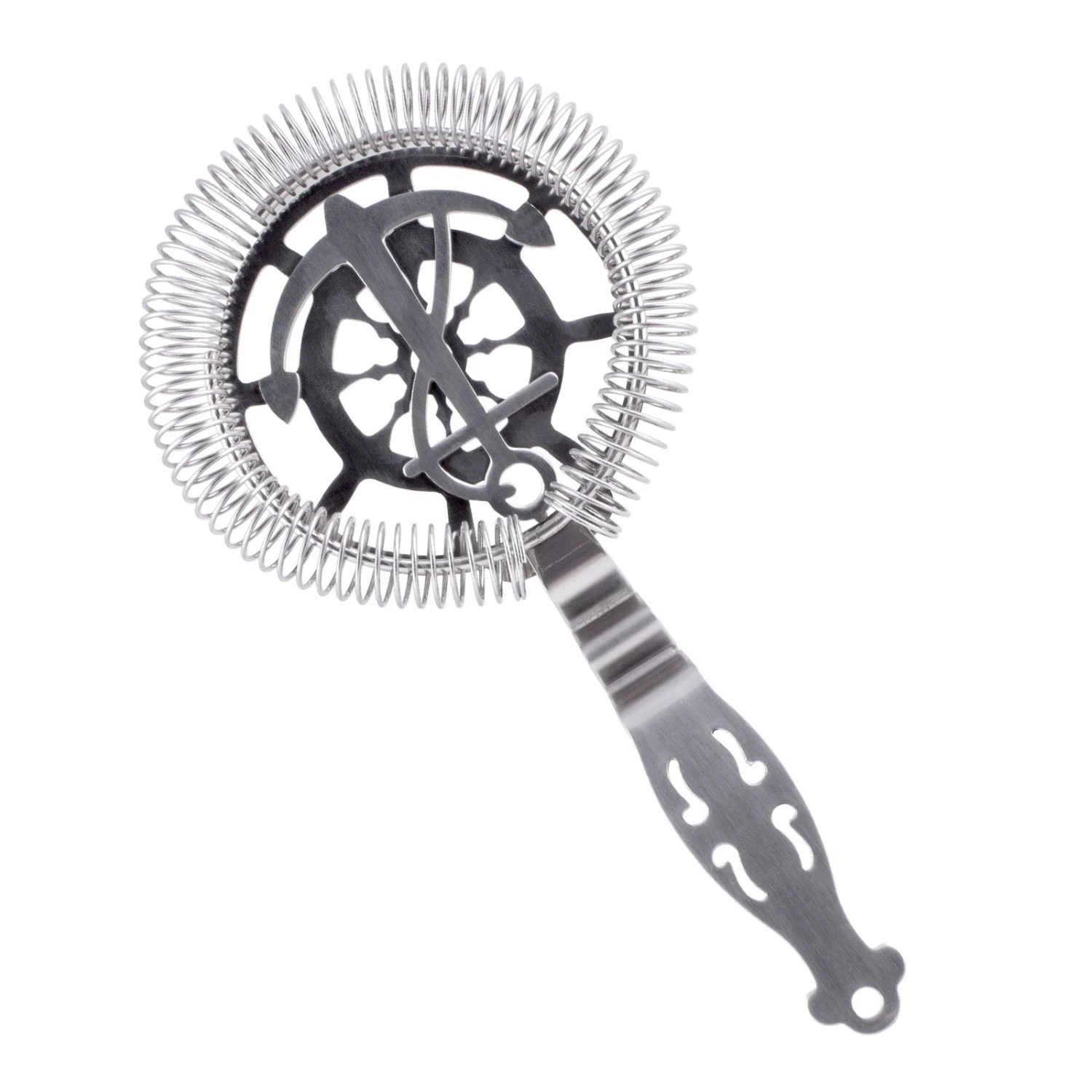 Another great item from the BarConic® line of bartending tools! This nautical cocktail strainer is perfect for any sailor themed bar setting. Constructed from a high quality stainless steel material, this cocktail strainer is built to last through many bartending storms. The professionally designed conforming coils securely fits most standard sized cocktail shakers and/or mixing glasses, allowing for a clean strain from ice and other ingredient particles. This strainer also features a notched upper handle that aids in holding the strainer in place while in use.