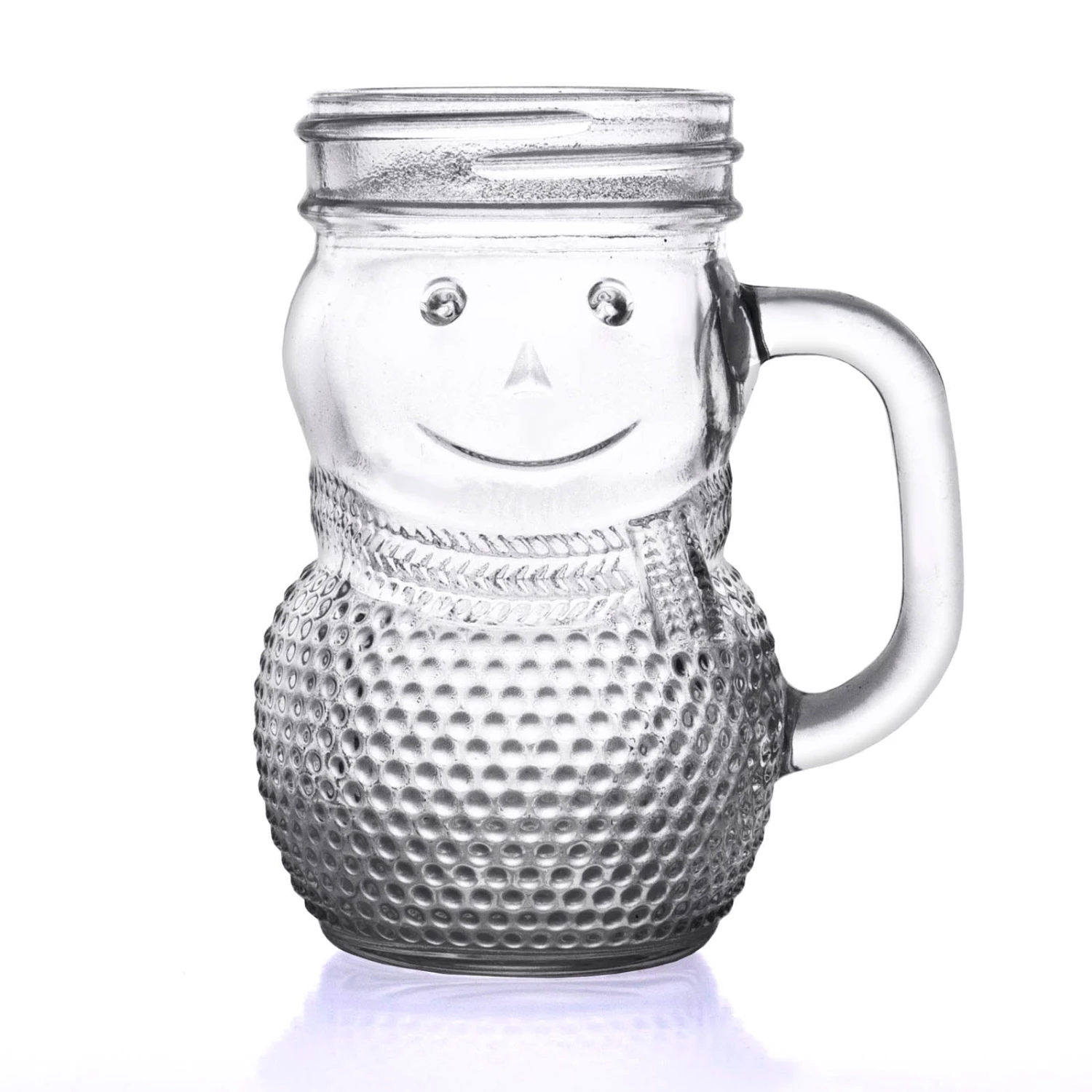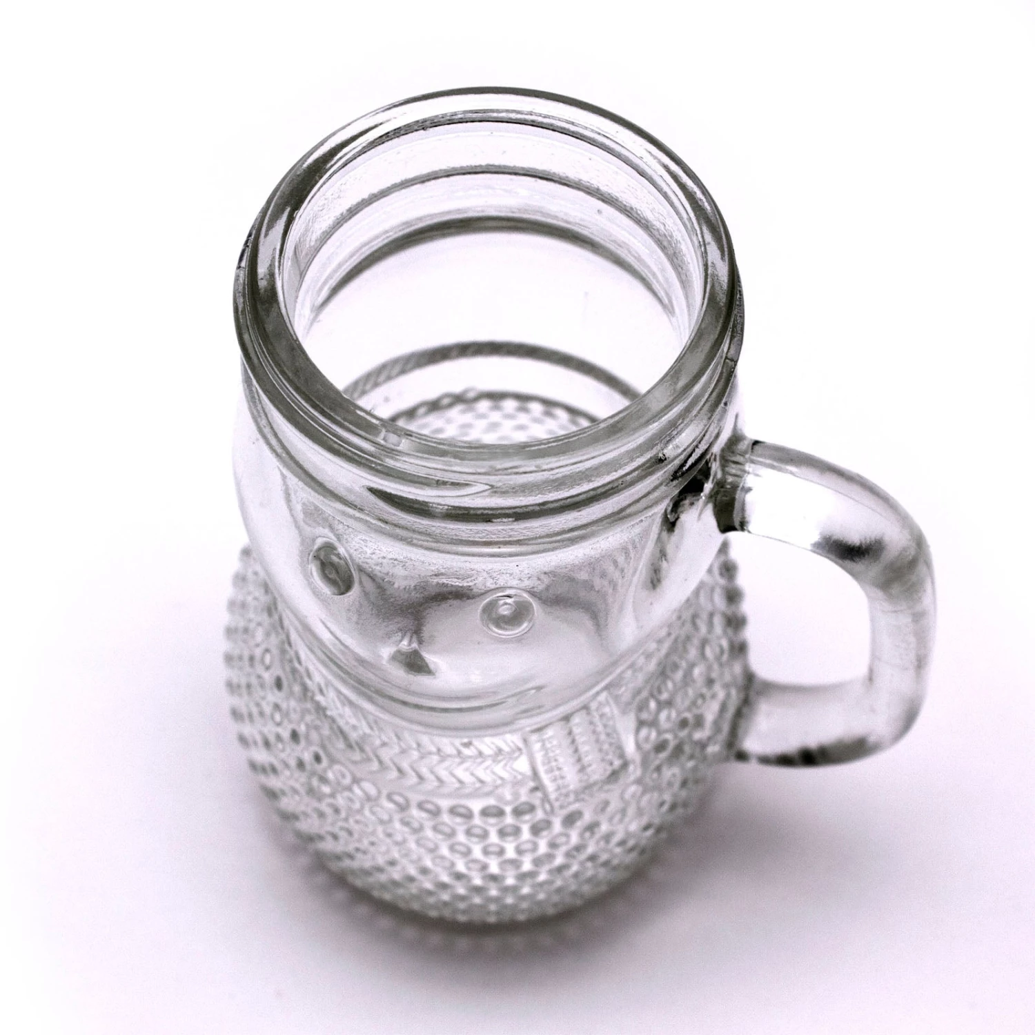 This little snowman glass is the perfect size to serve up your next Christmas mini cocktail or Holiday shooter. Its design is inspired by the ever popular Mason Jar and this cute little holiday glass even features a mason jar style handle. This snowman mason jar features a happy face with a patterned scarf and a beady textured feeling on the lower half of the glass. It is durable yet lightweight. This is a great glassware accessory to add to your holiday collection.