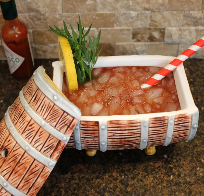 If you are a fan of our growing BarConic® tiki drinkware line then you will certainly love this addition! Designed after a whiskey barrel, it will ensure an exciting themed vibe to your cocktails. Tiki mugs are perfect for any type of establishment, whether it be a tiki themed bar, craft bar or the home bar enthusiast’s bar. This barrel tiki mug is made from a durable ceramic and then professionally hand painted with a beautiful glaze overcoat, topped off with a matching lid with straw hole. Holds up to 20 ounces.