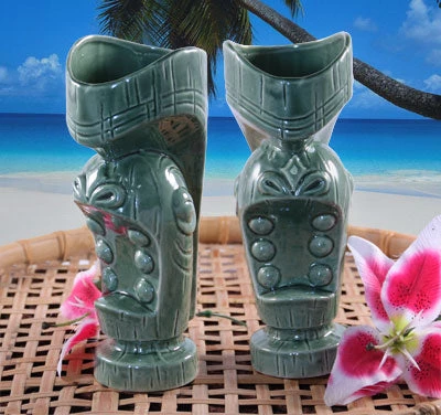 This big Mouthed ceramic Tiki Mug is sure to make a big impact at your next tropical bash. It is artistically molded with an offset style that makes drinking out of this mug not only a pleasure, but an event. The design also offers the user a superb grip on the mug. Try out any frothy concoction and see your guests happy reactions to the fun element of drinking out of the “Mouth” Tiki Mug. Holds 20 ounces and stands 9″ tall.