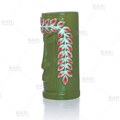 If you are looking to style up your next party in an artsy and creative way then introduce your latest frozen tropical libations in this “Leaf” themed ceramic tiki mug for a great start! The trendy long face and leafy vine head wrap will add a touch of Hawaiian godliness to your tropical cocktail ambiance. This quality piece of tiki drinkware showcases quality craftsmanship with defined accents of a Hawaiian origin. The carved face green coloring is also defined with a white and coral leafy vine that is beautifully glazed over, giving this ceramic drinking cup an elegant and smooth finish. Another fantastic piece of the Barconic® Tiki Drinkware line, this sophisticated tiki face mug stands 6 inches tall with a 2.5″ rim diameter. It holds up to 12 ounces of liquid. Take your drink presentation to new heights and master the art of mixology by adding this “Leaf” Tiki Mug to your drinkware collection.