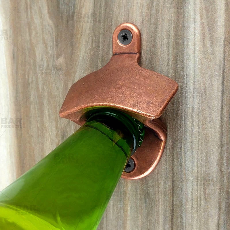 This durable metal wall mounted opener is simple and classic, featuring a rustic antique copper finish. It easily and securely mounts to your wall or wood plaque with 2 screw holes on the top and bottom, offering you and your guests a unique way to open your beer bottles.