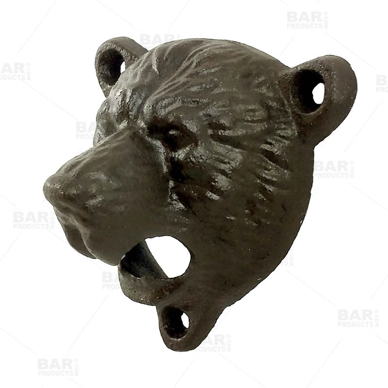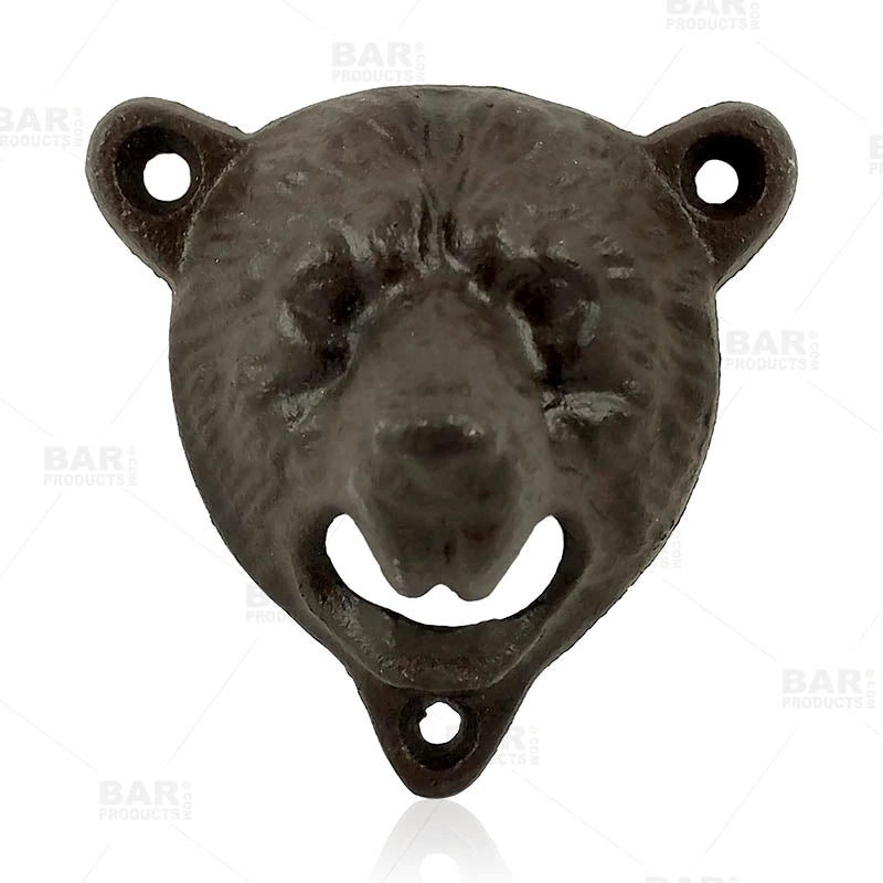 This extremely durable cast iron wall mounted opener showcases a fun bear head theme. It easily and securely mounts to your wall or wood plaque with 2 screw holes in the ears and 1 in the chin, offering you and your guests a unique way to open your beer bottles. The bear design is enhanced with a metallic brown coating that is rustically appealing.