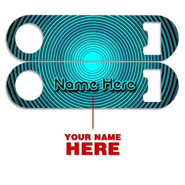 If you are someone that is a fan of our mini style speed openers then you are sure to love this Skinny Mini Bottle Opener! Choose from a large selection of fun coloful designs, such as this “Blue Swirl” design template that can be customized with your very own name! Simply type in your text and our design team will do the rest!