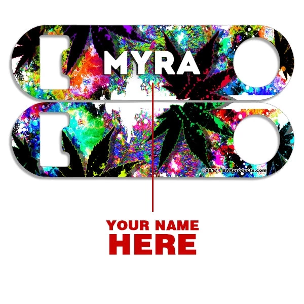 If you are someone that is a fan of our mini style speed openers then you are sure to love this Skinny Mini Bottle Opener! Choose from a large selection of fun coloful designs, such as this “Colorful Stoner” design template that can be customized with your very own name! Simply type in your text and our design team will do the rest!