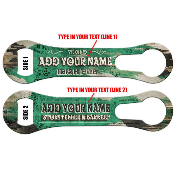 When it comes to customizing your very own bottle openers, our “Add Your Name” feature is perfect. Simply type in your text and we do the rest. It’s that easy! Among many other cool, trendy templates, this Irish bar theme is designed with the bar owner or home bar enthusiast in mind. Simply type in your information and you have your own personalized V-Rod® Bottle Opener. Everyone is sure to love this vintage Irish design as it adds a fun element to your bar vibe and decor