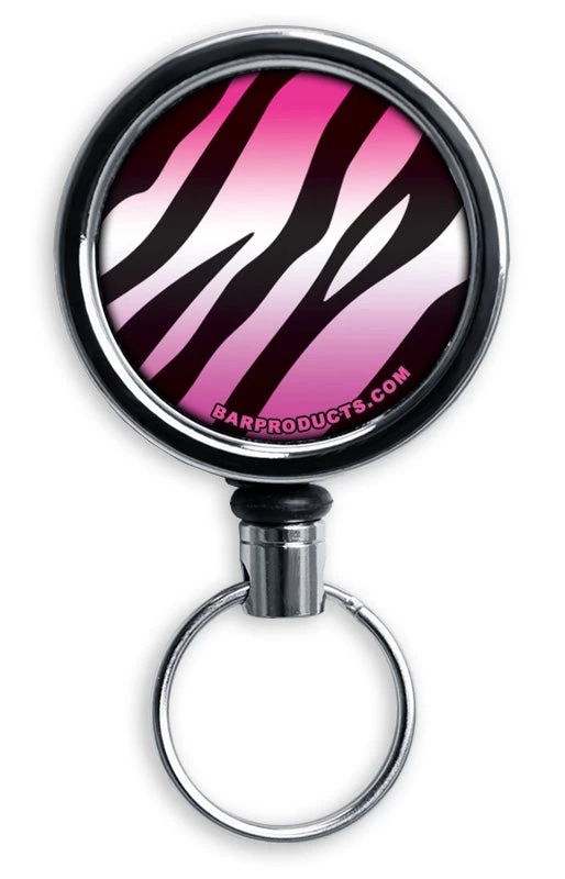 Clip your bottle opener practically anywhere for quick, convenient access… and do it with style! Showcasing a full color Pink Zebra print design, we have tastefully decorated our trendy mini bottle opener to match this quality retractable reel. Clip it to your belt, pants, pocket, purse or anywhere else you can think it would come in useful. Don’t miss out on the price break when bought as a set, or purchase them separately to mix and match. This retractable reel also works in conjunction with our other bottle opener styles!