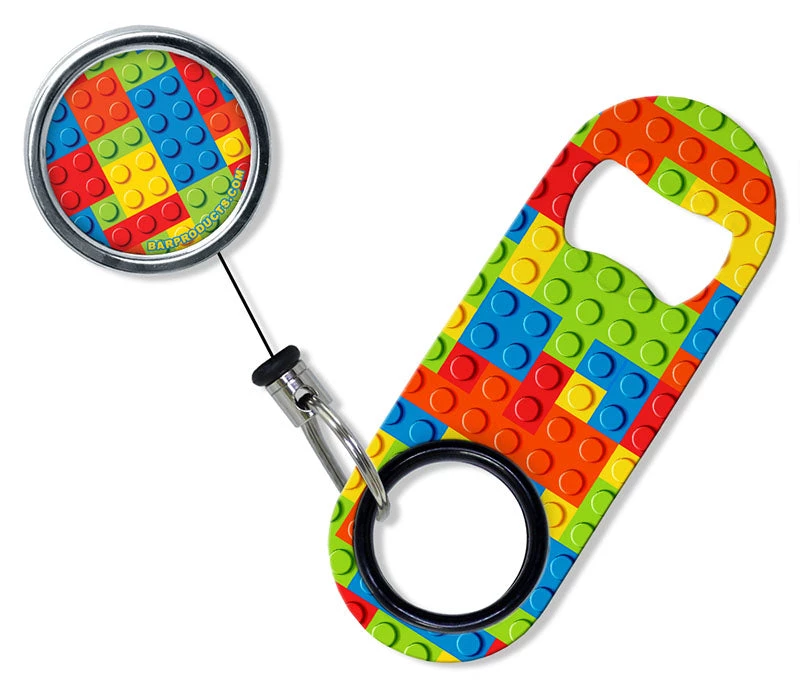 Clip your bottle opener practically anywhere for quick, convenient access… and do it with style! Showcasing a full color Lego design, we have tastefully decorated our trendy mini bottle opener to match this quality retractable reel. Clip it to your belt, pants, pocket, purse or anywhere else you can think it would come in useful. Don’t miss out on the price break when bought as a set, or purchase them separately to mix and match. This retractable reel also works in conjunction with our other bottle opener styles!