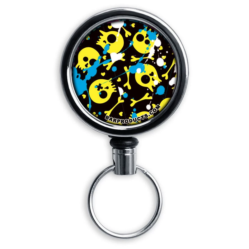 Clip your bottle opener practically anywhere for quick, convenient access… and do it with style! Showcasing a full color Splattered Skulls pattern design, we have tastefully decorated our trendy mini bottle opener to match this quality retractable reel. Clip it to your belt, pants, pocket, purse or anywhere else you can think it would come in useful. Don’t miss out on the price break when bought as a set, or purchase them separately to mix and match. This retractable reel also works in conjunction with our other bottle opener styles!